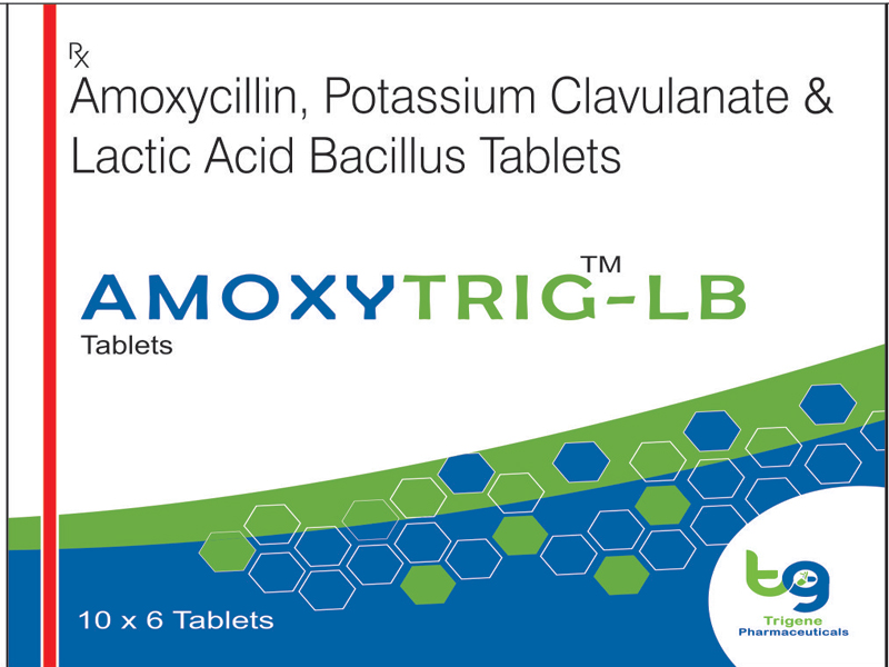 | AMOXYTRIG-LB | AMOXYCILLIN 500mg+ CLAVUNIC ACID 125mg+ LACTOBACILLUS 60 million spores Tablets | 1X6 |